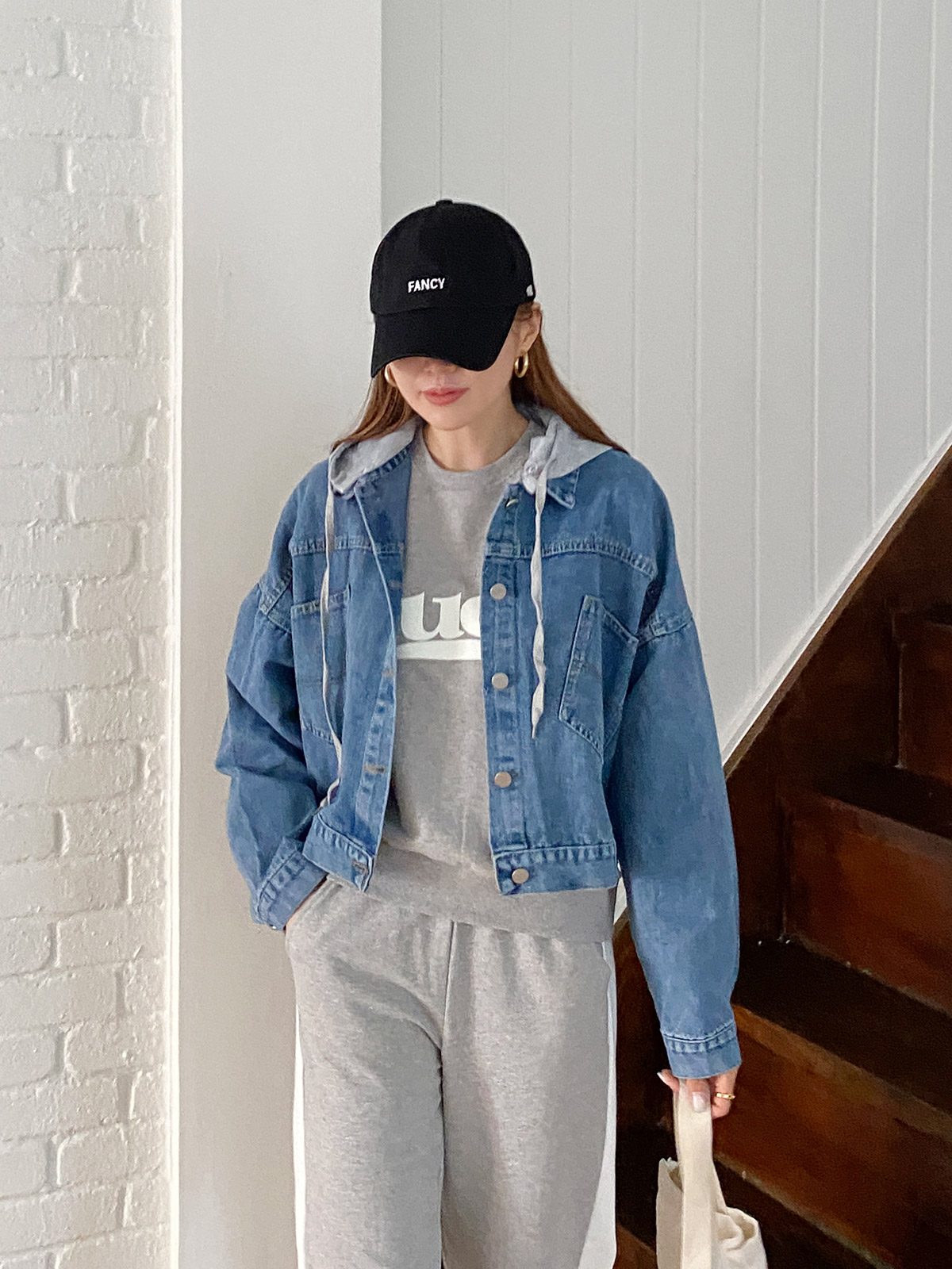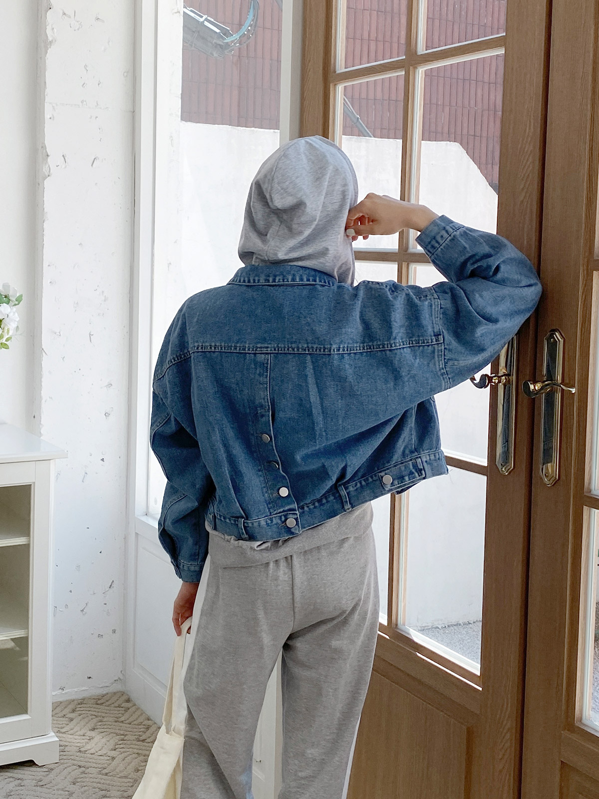 후드 탈부착이 가능하며, 베이직한 디자인으로 캐주얼하게 착용이 가능한 후드 데님 자켓