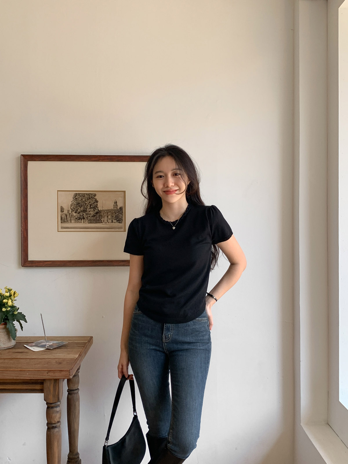 #니트#라운드넥니트#여성니트#데일리니트#니트코디#데일리코디#페미닌#러블리#캐쥬얼#데일리#넥꼬임#반팔니트