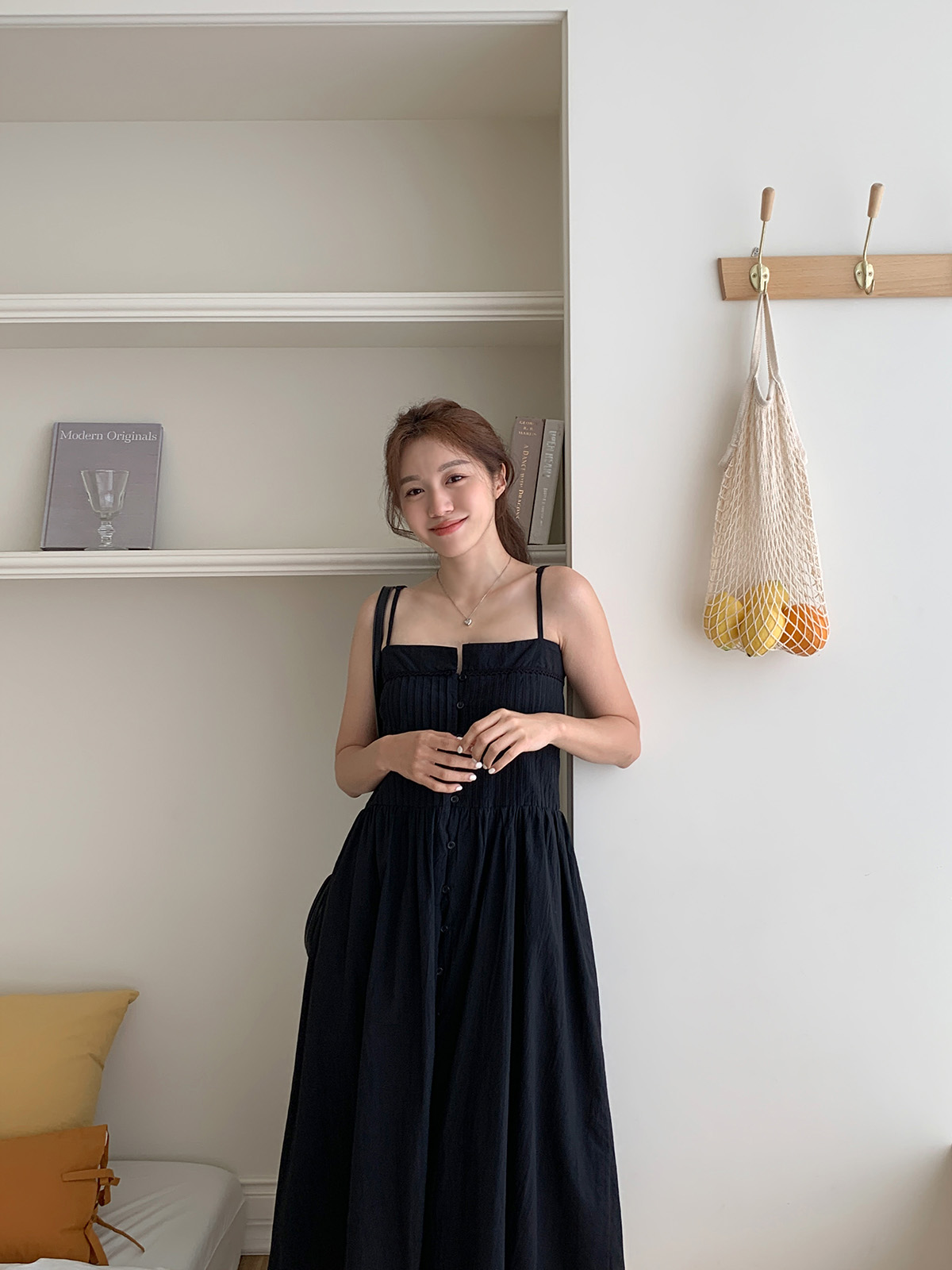작은 단추들이 귀여운 포인트를 주는 끈나시 롱원피스 추천드려요 ₍♡•͈ᴗ•͈♡₎