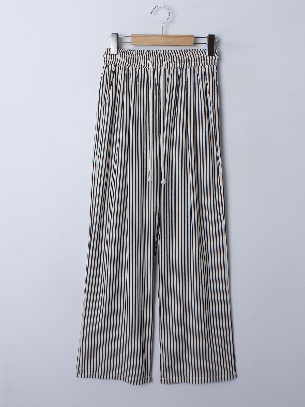 소프트느낌의 컬러감과 스트라이프 패턴이 더해져 전체적으로 차분하고 부드러운 느낌의 팬츠
