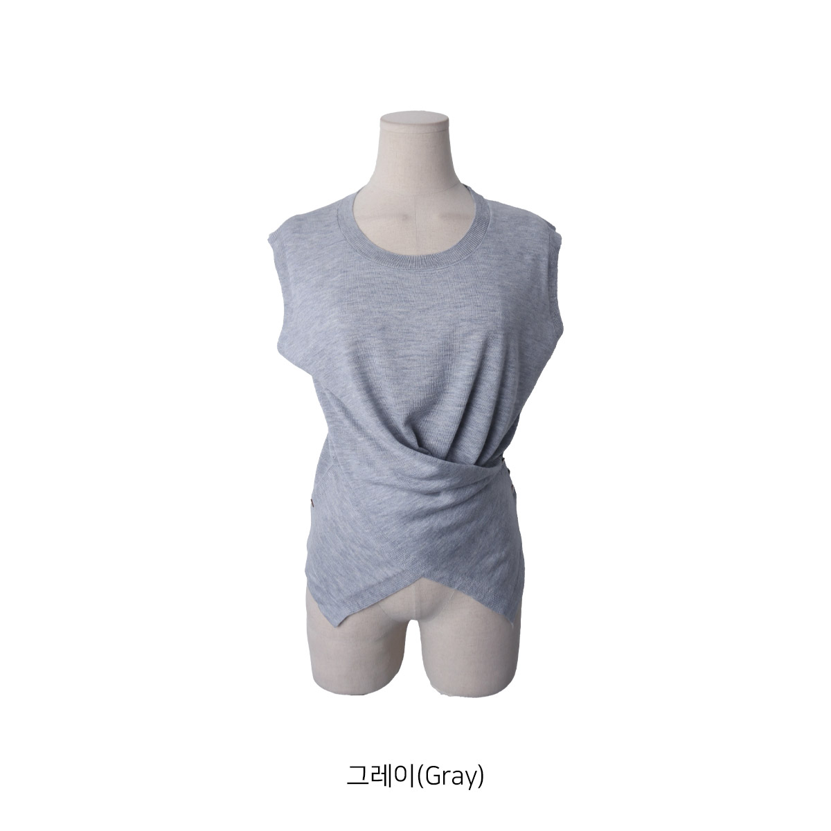 밑단 트임과 크로스 꼬임 연출이 가능한 버튼 디자인이 인상적인 민소매 오버핏 니트에요!