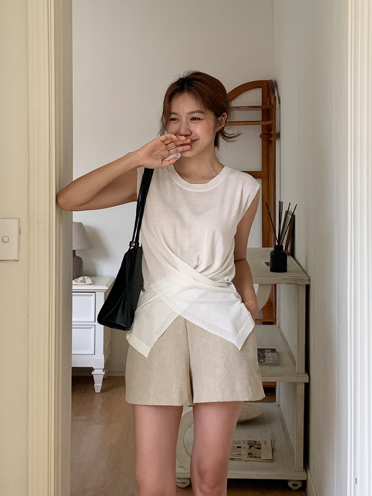 가볍고 부드러운 소재감으로 자극없이 피부에 닿아 편안한 착용감을 주며, 여름에도 시원하게 즐길 수 있는 민소매 니트로 추천해요~!