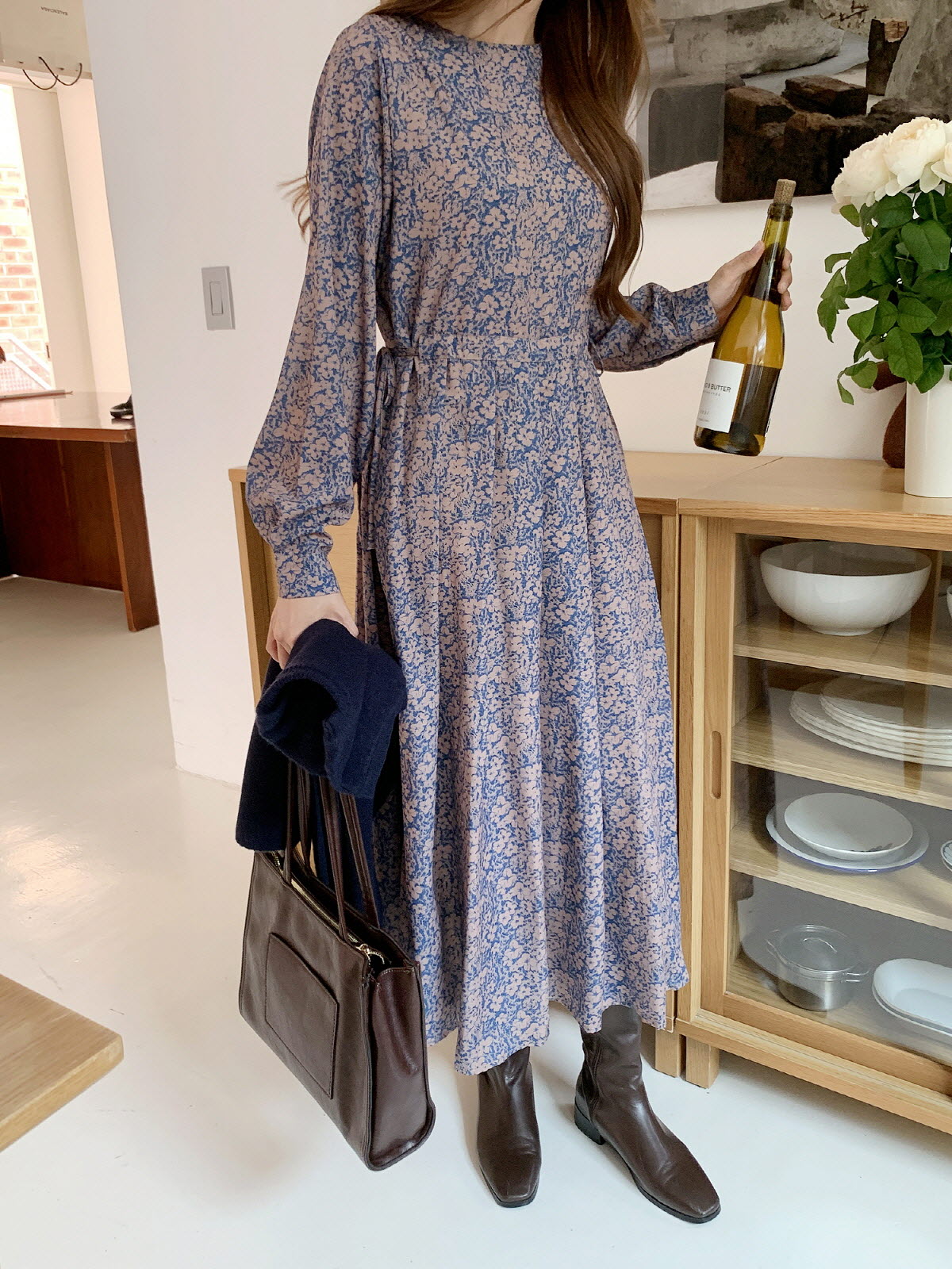 플라워 패턴이 들어가있어 러블리한 무드의 플리츠 롱 원피스 추천 해드려요~!