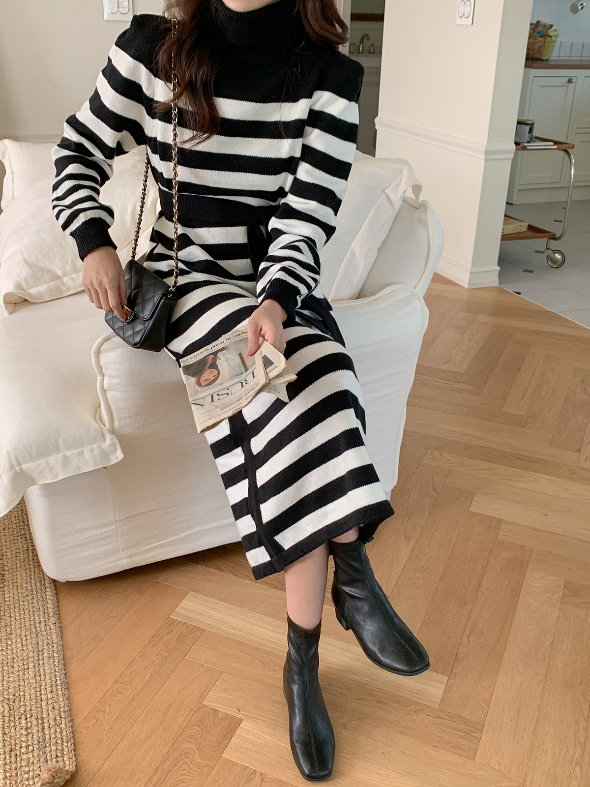 목폴라가 있어서 한층 더 따뜻하게 입을 수 있는 롱 니트 원피스 추천해드려요~!