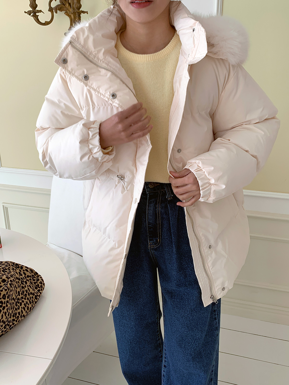 빅 페이크퍼 후드 페미닌 하프 페딩를 추천해 드립니다~!