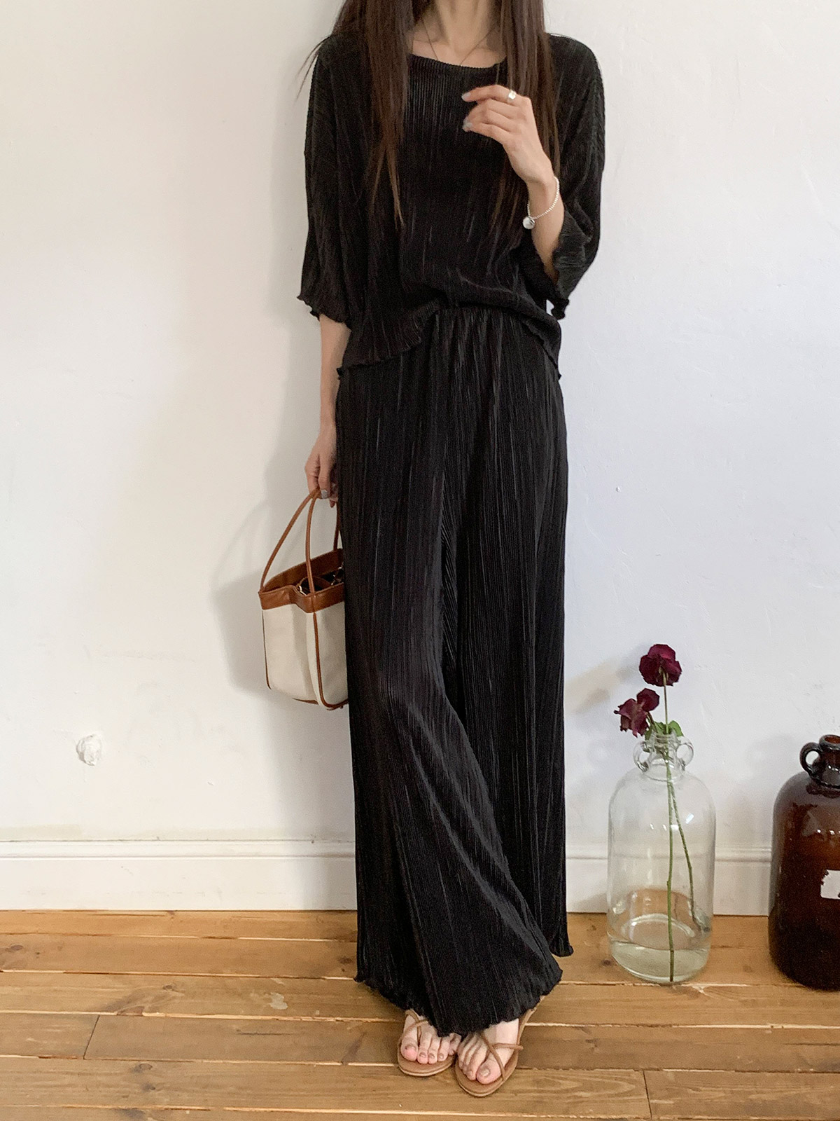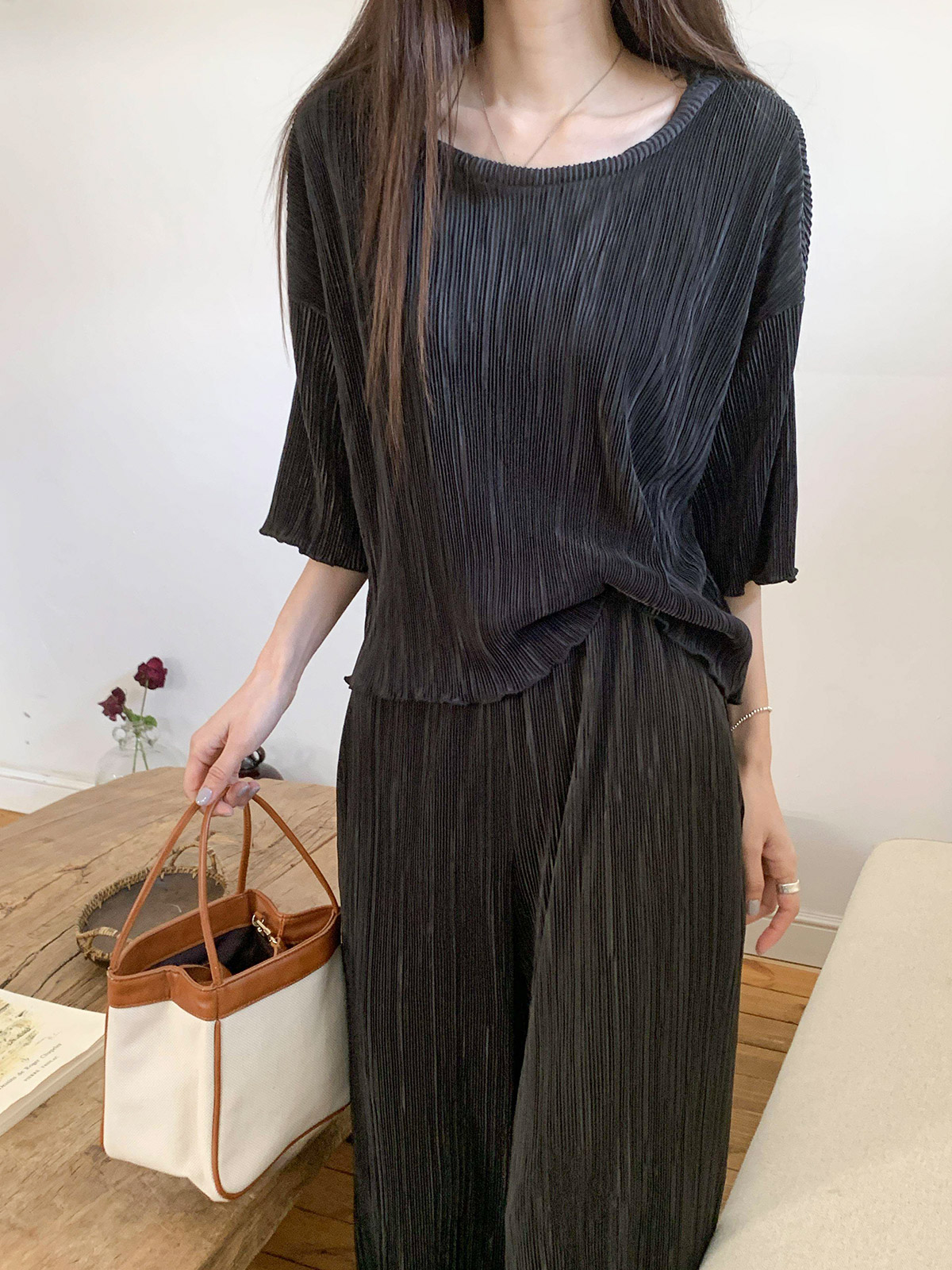이지하게 입기 좋은 플리츠 티셔츠 팬츠 세트