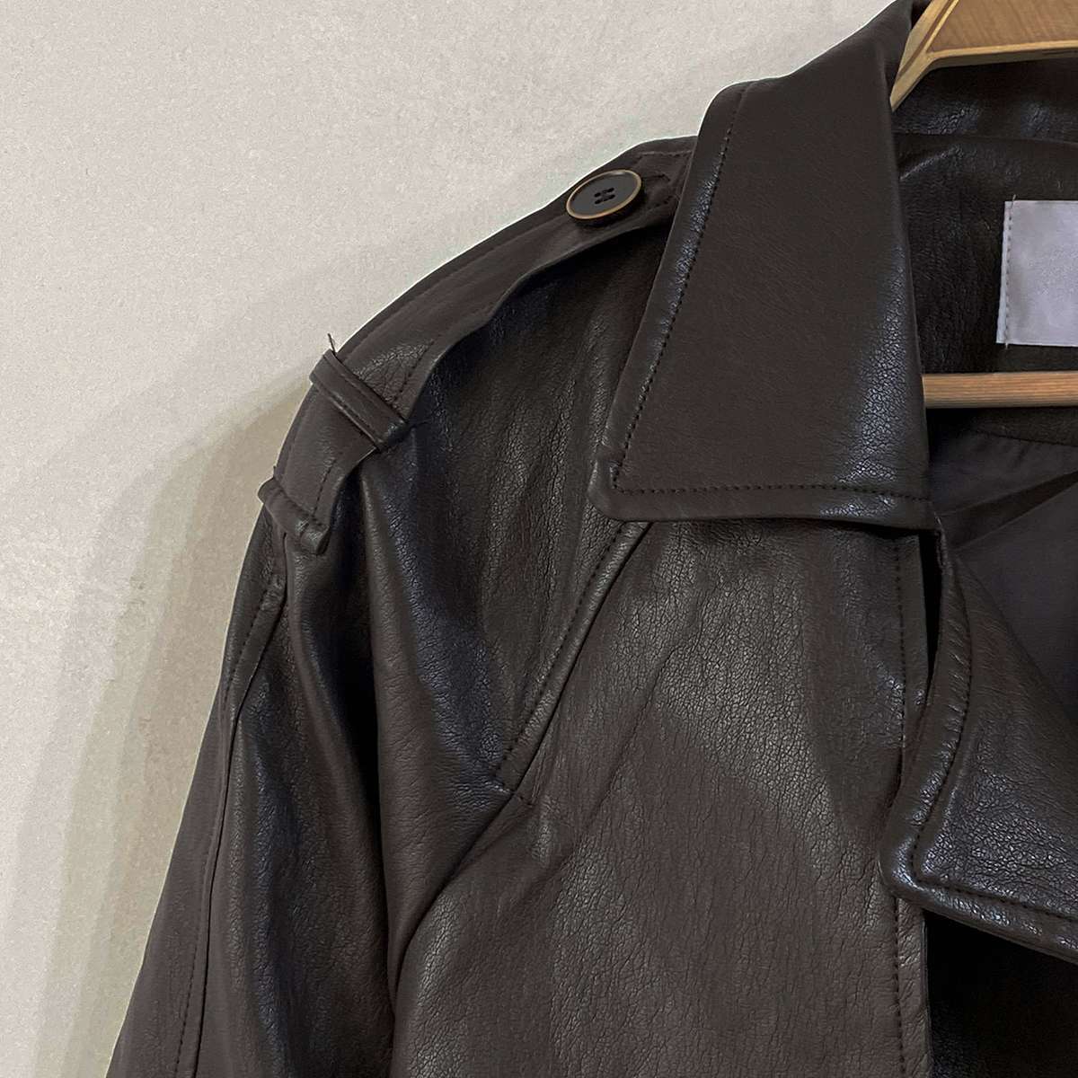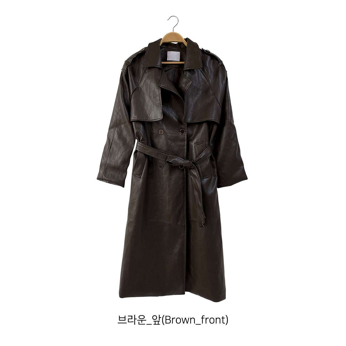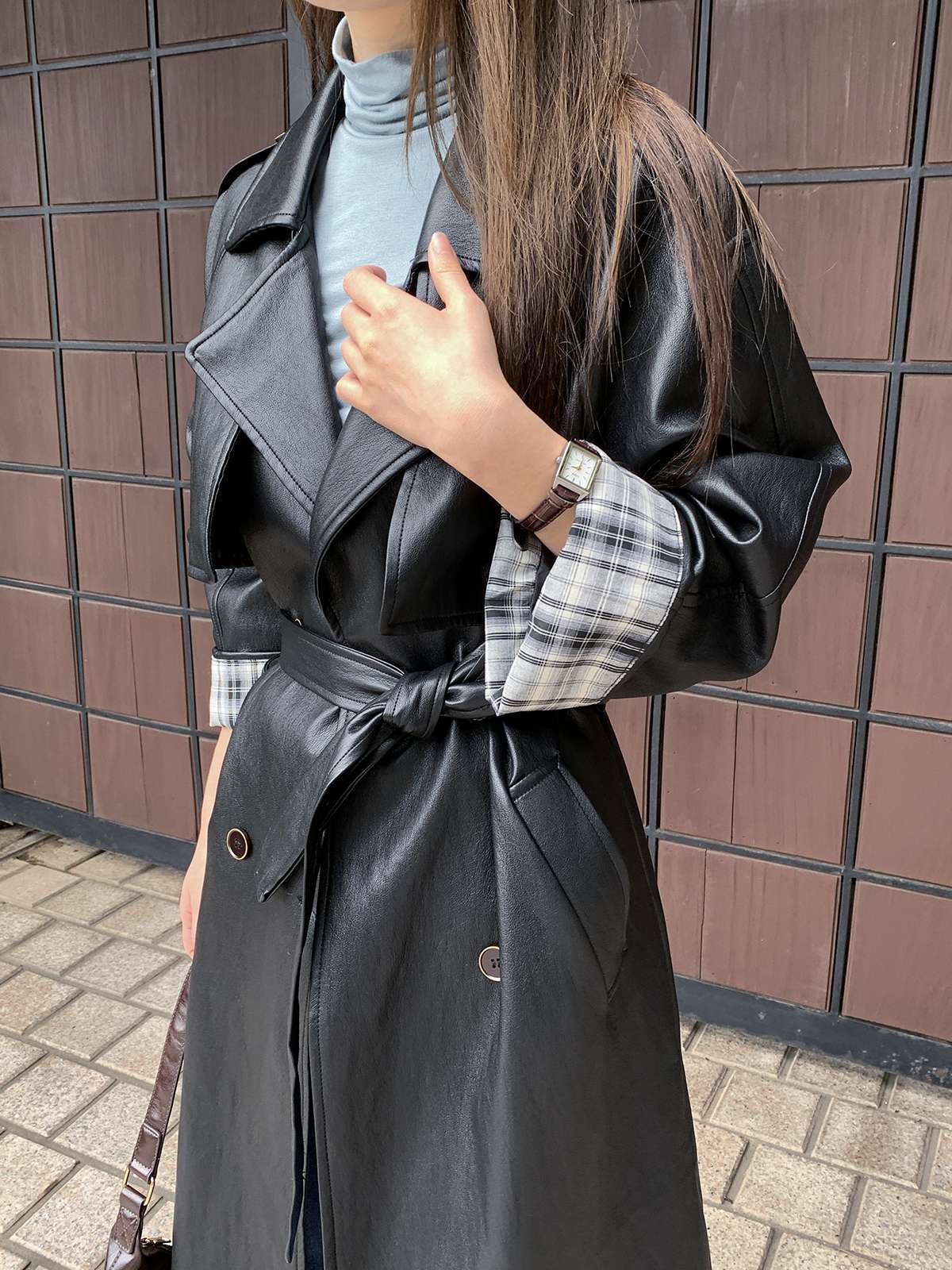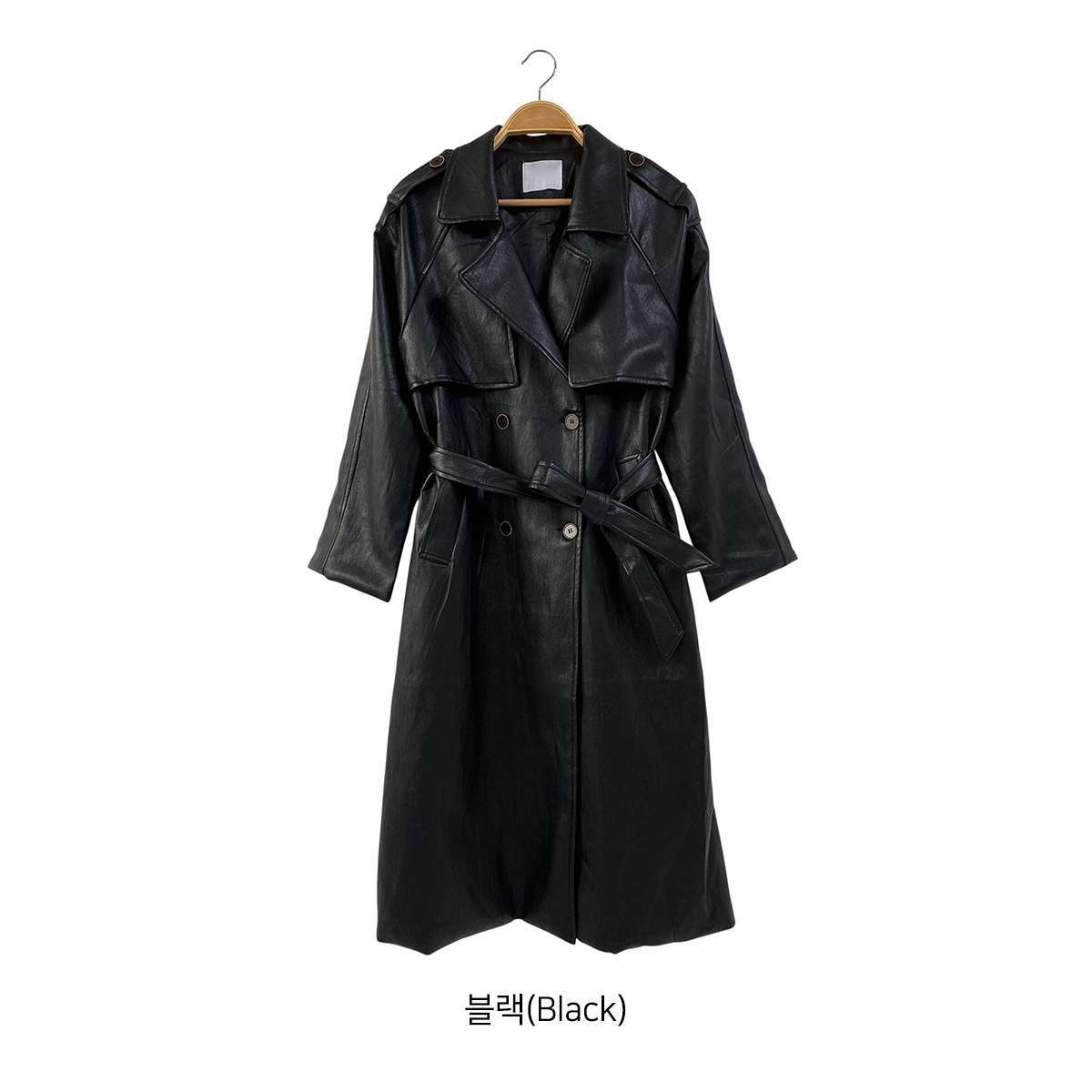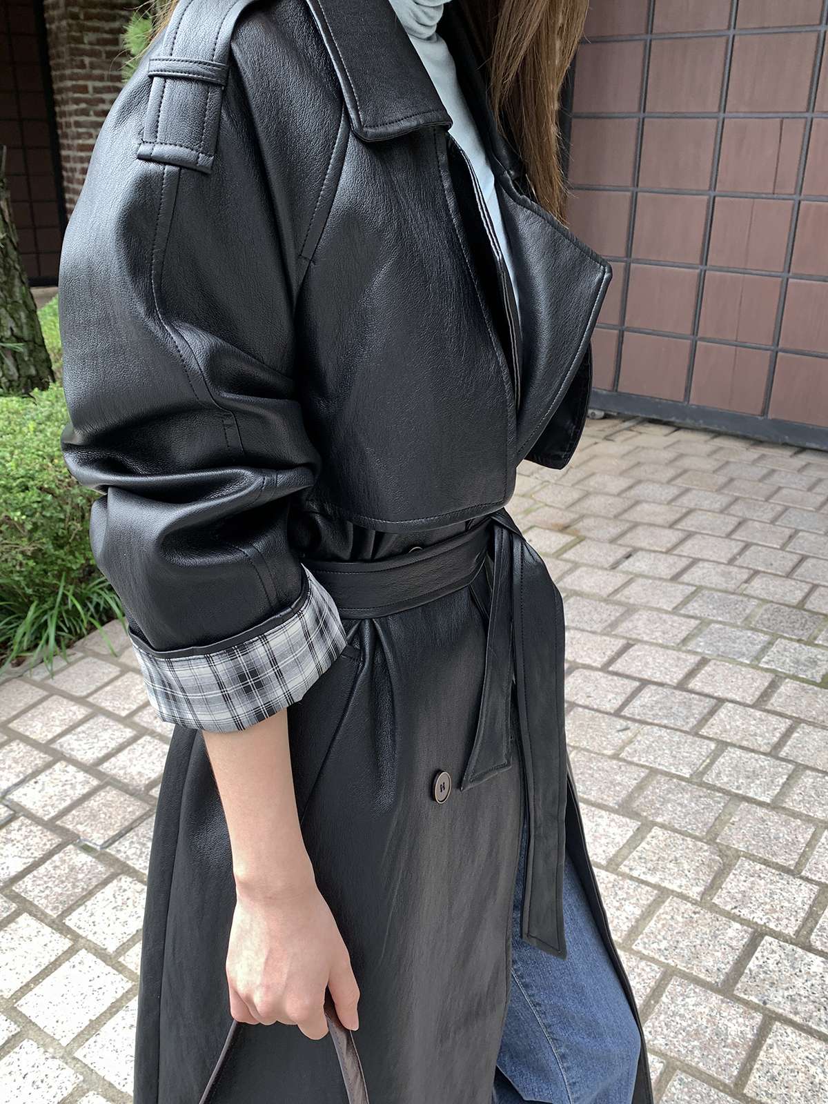고급스러운 가죽 소재가 돋보이는 트렌치코트예요!