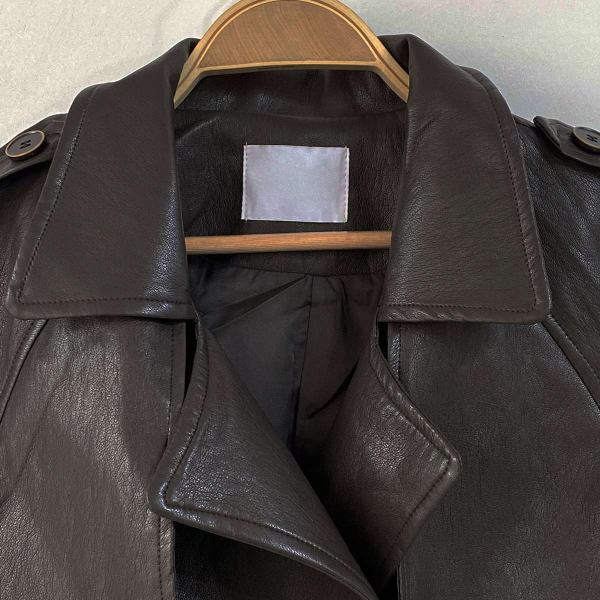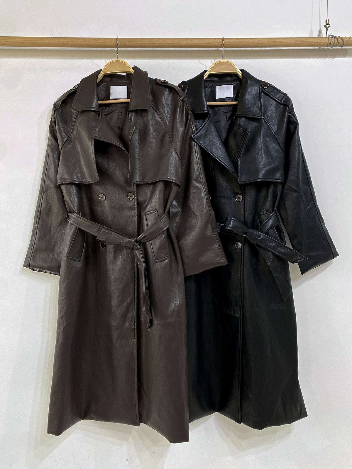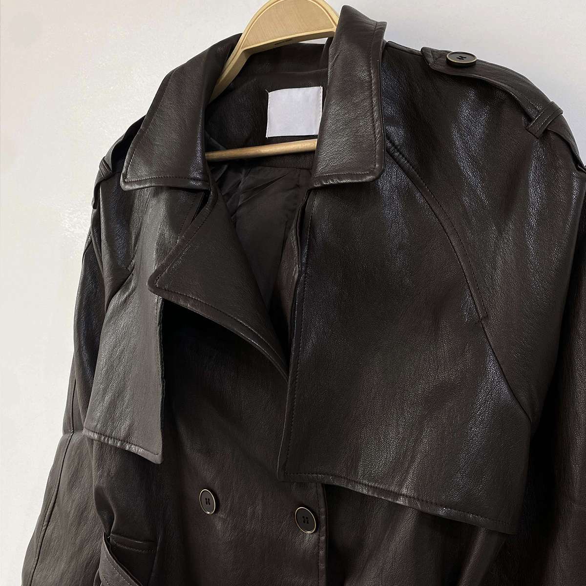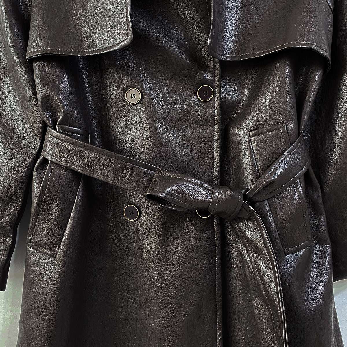 고급스러운 가죽 소재가 돋보이는 트렌치코트예요!